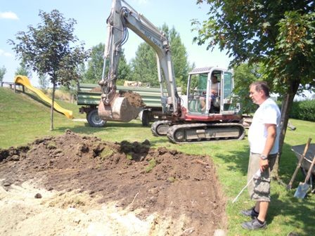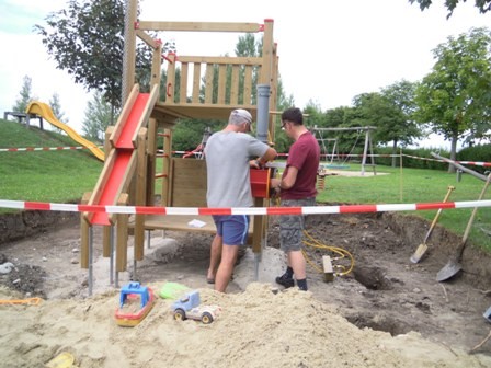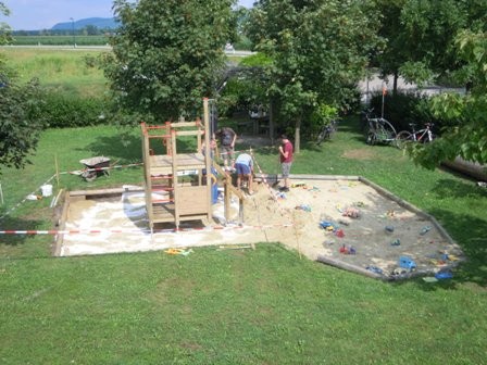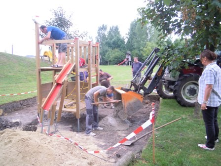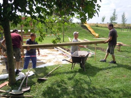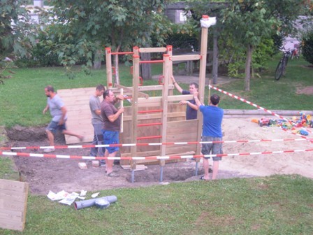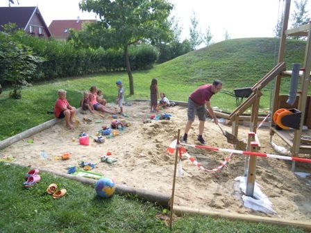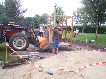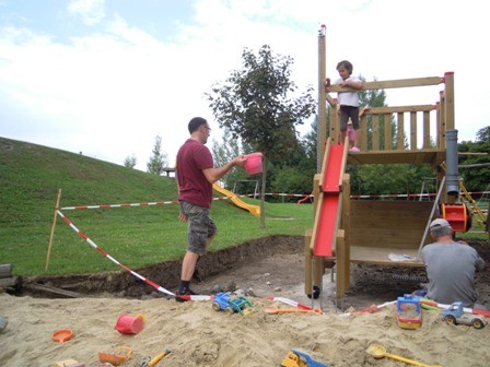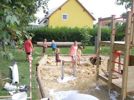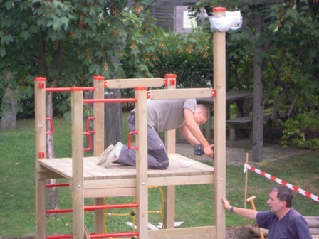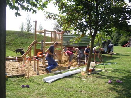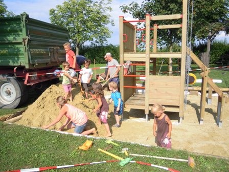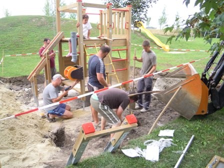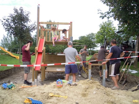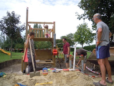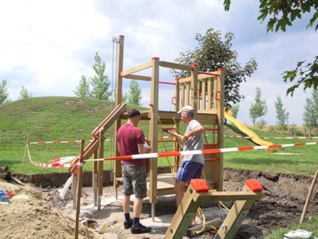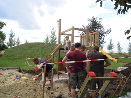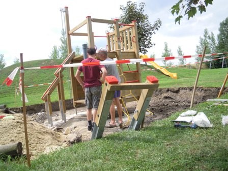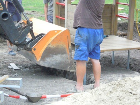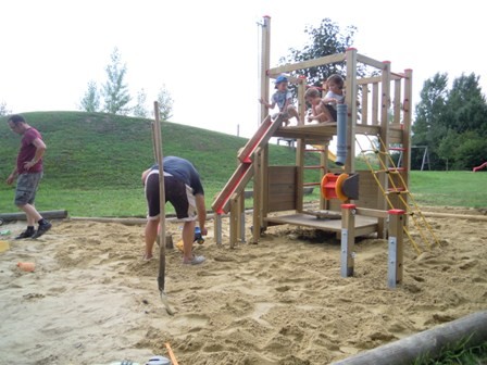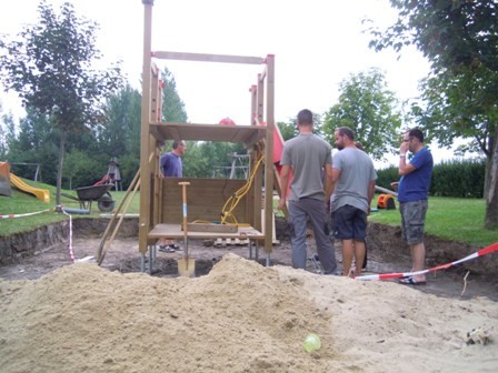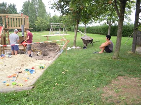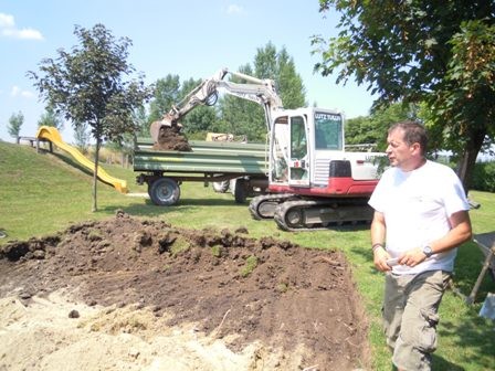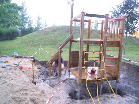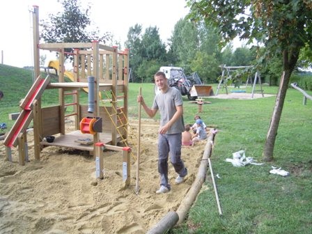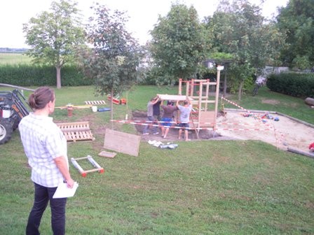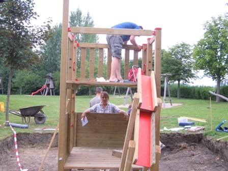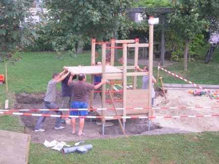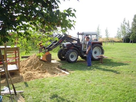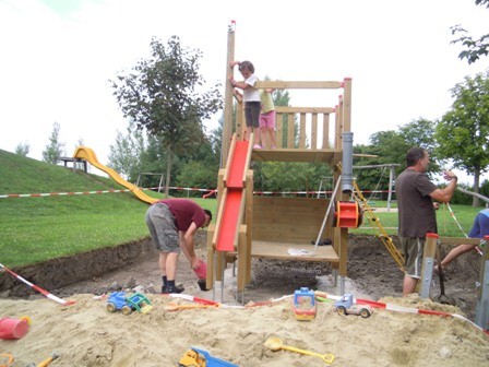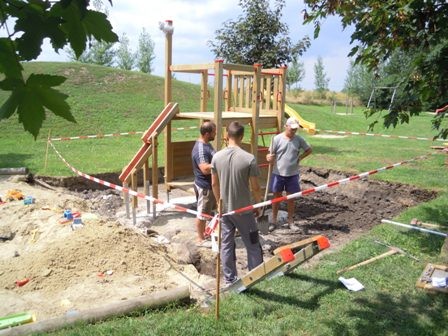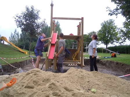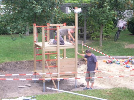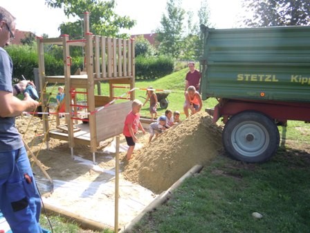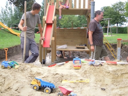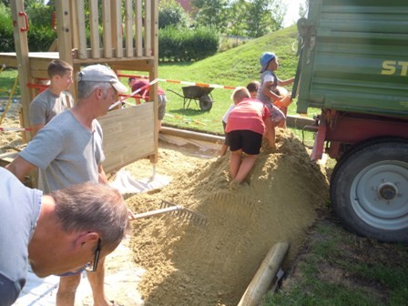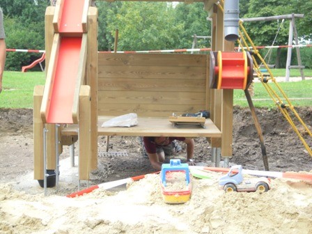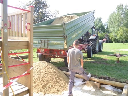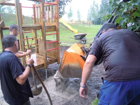 Anlieferung und Aufbau des vom DVW´s gespendeten Sandspielgerätes
