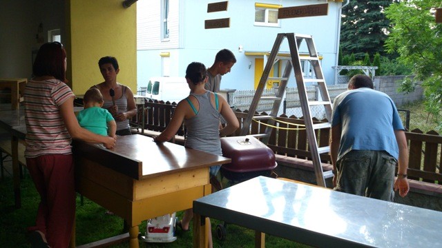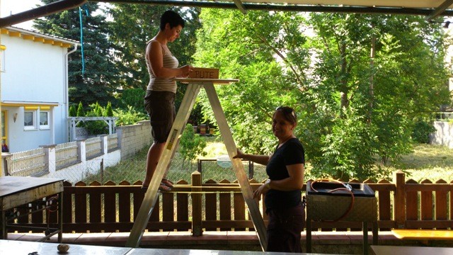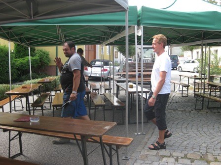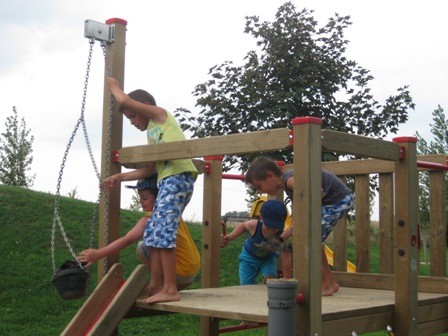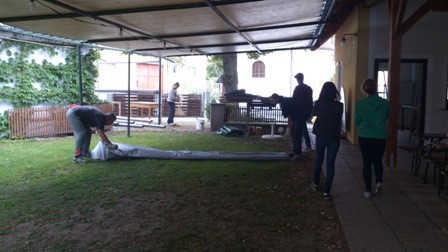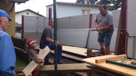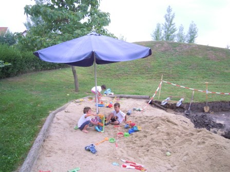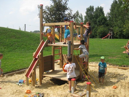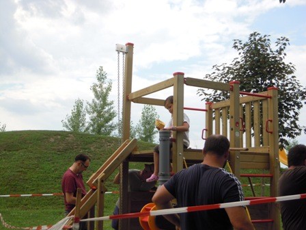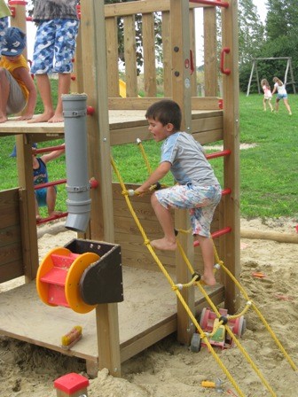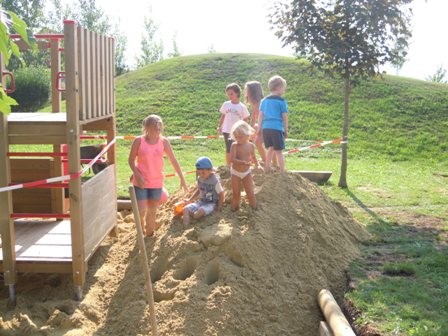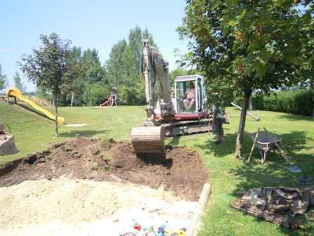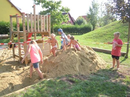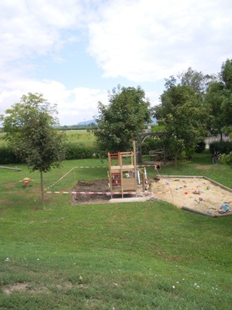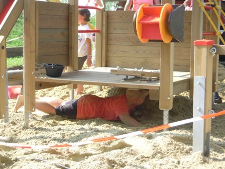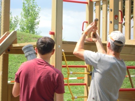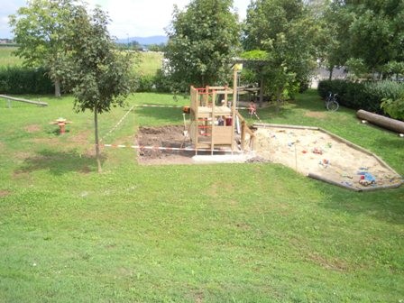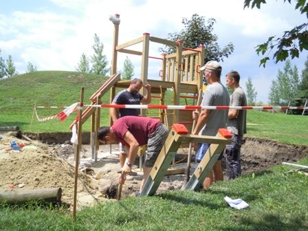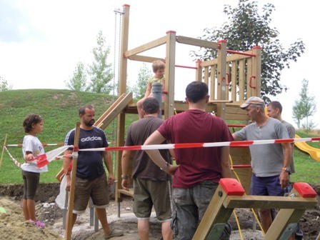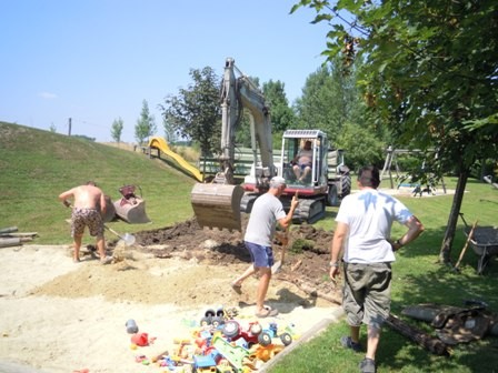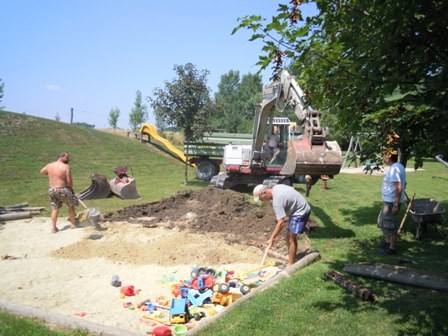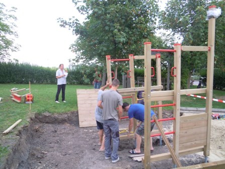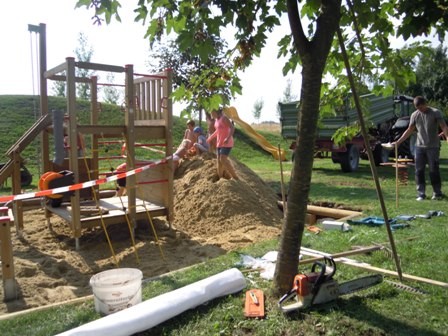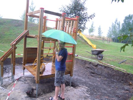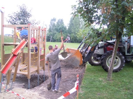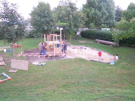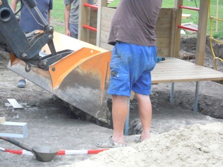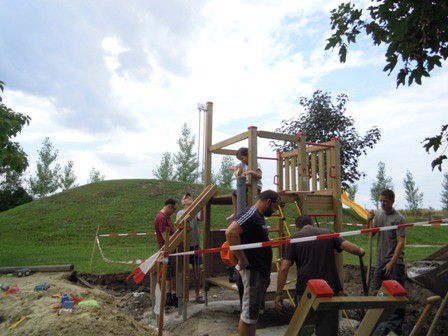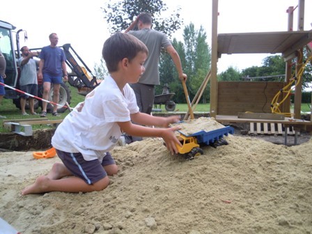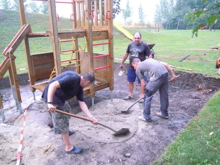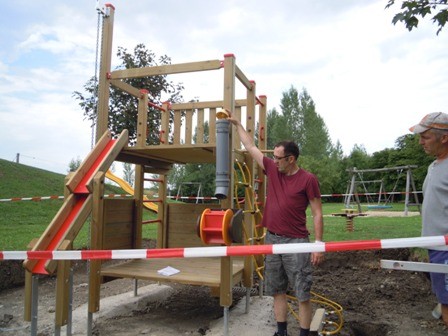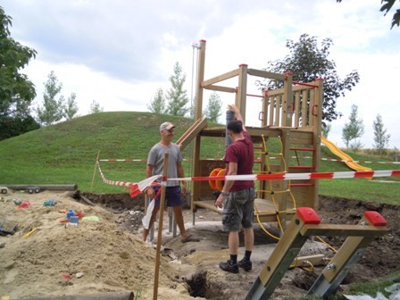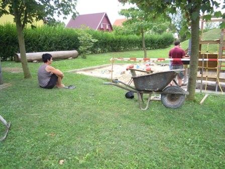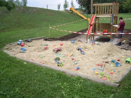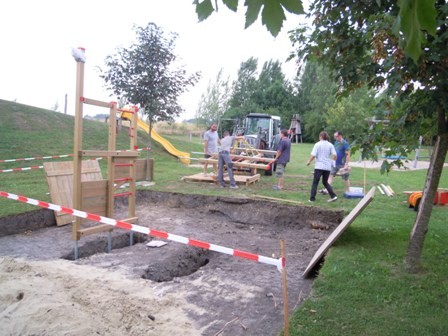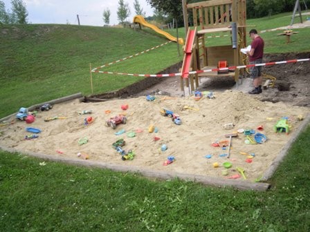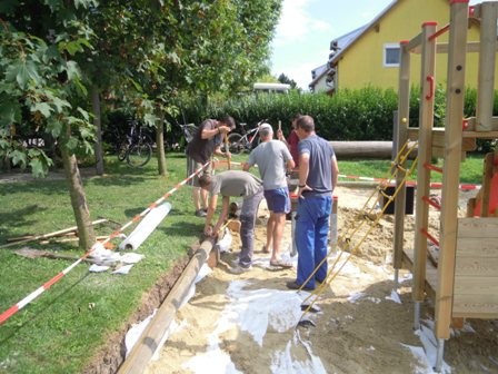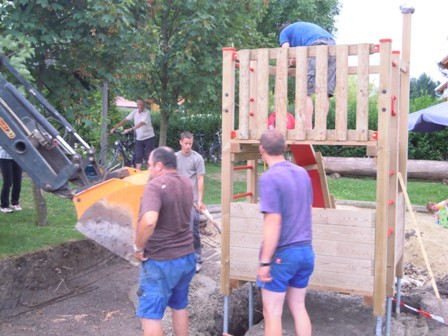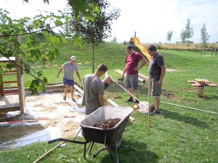 Anlieferung und Aufbau des vom DVW´s gespendeten Sandspielgerätes