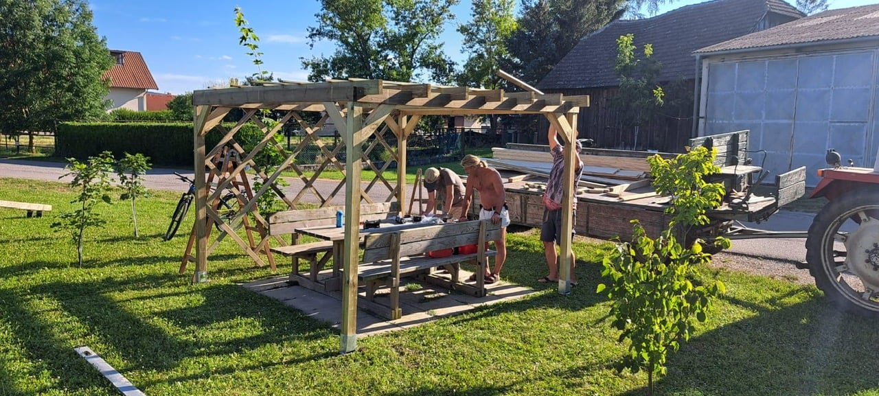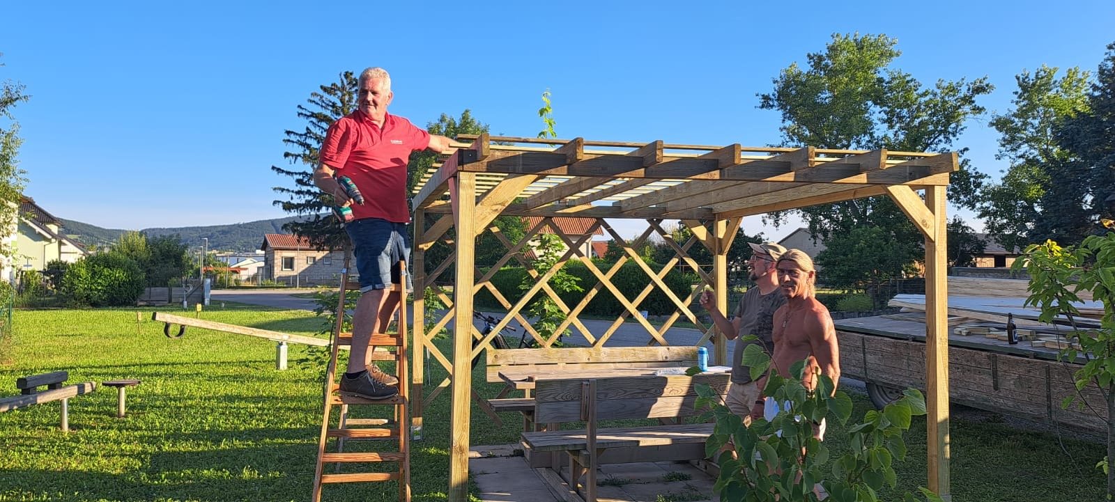 Aufbau Pergola bei der Balancierstation