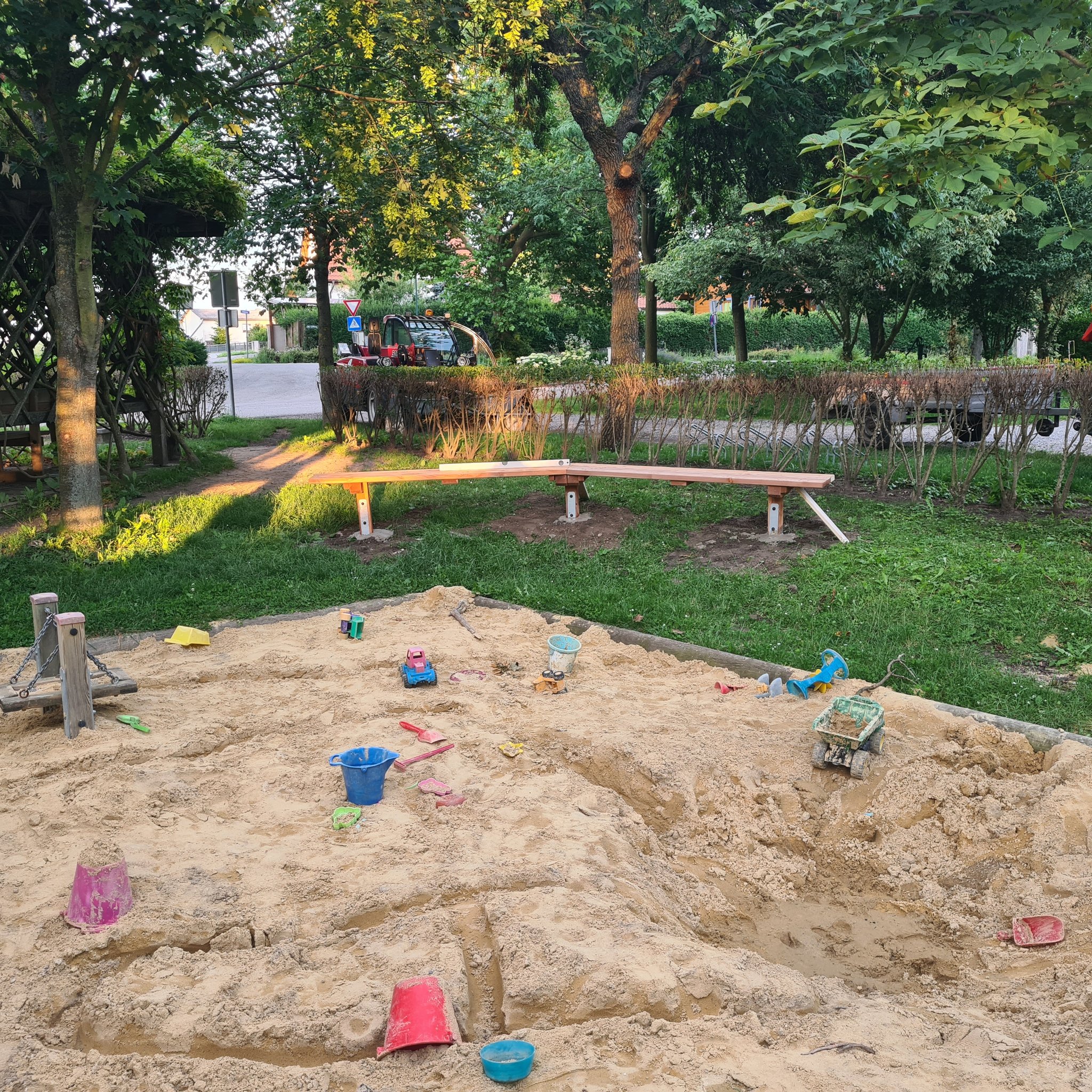 Sitzgelegenheiten rund um die Sandkiste